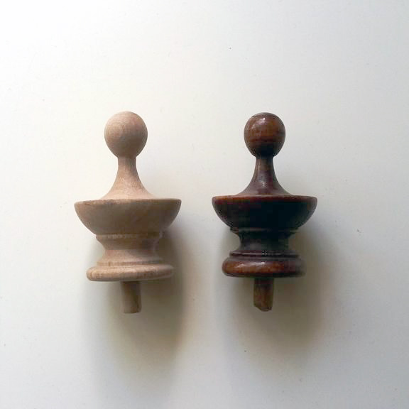 Dostal jsem další podobnou zakázku – ozdobu starých hodin. Podle originálu, který je pravé straně, jsem vyrobil kopii. Zvolil jsem ořechové dřevo. Pro představu největší průměr je 3,4 cm, takže docela malá záležitost. Na tyto drobné věci jsou potřeba malé nástroje, které v podstatě nemám, takže jsem trochu improvizoval. Ale nakonec až na jeden rozměr jsem…