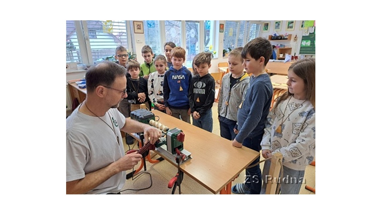 Žáci ze 2. tříd v ZŠ Rudná si dílničky náramně užili. Vyrobili si třešňový přívěsek pro maminku a naučili se základy broušení brusnými papíry, nanesli si na něj olej na dřevo a navlékli liščí smyčku pomocí šňůrky z vepřovice.